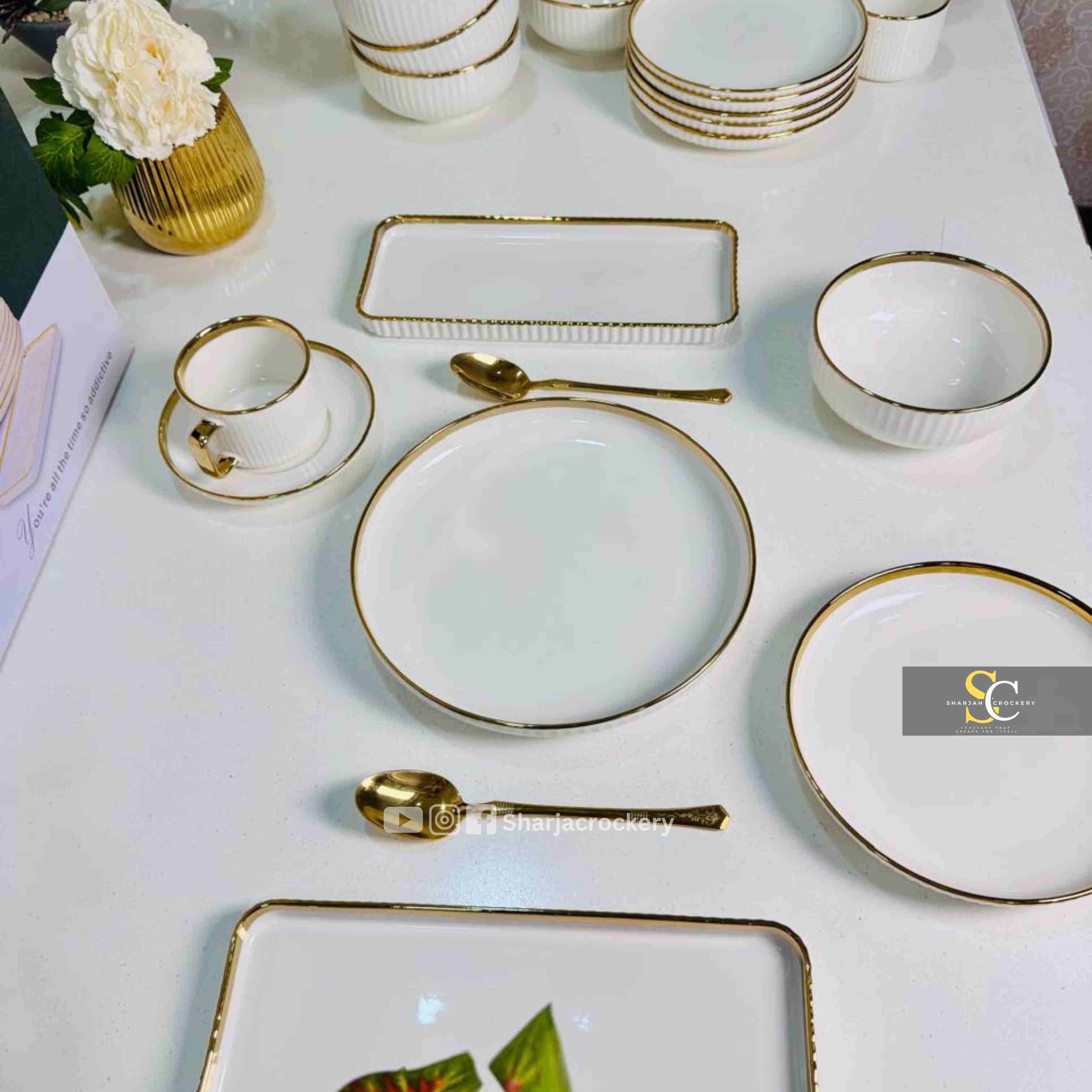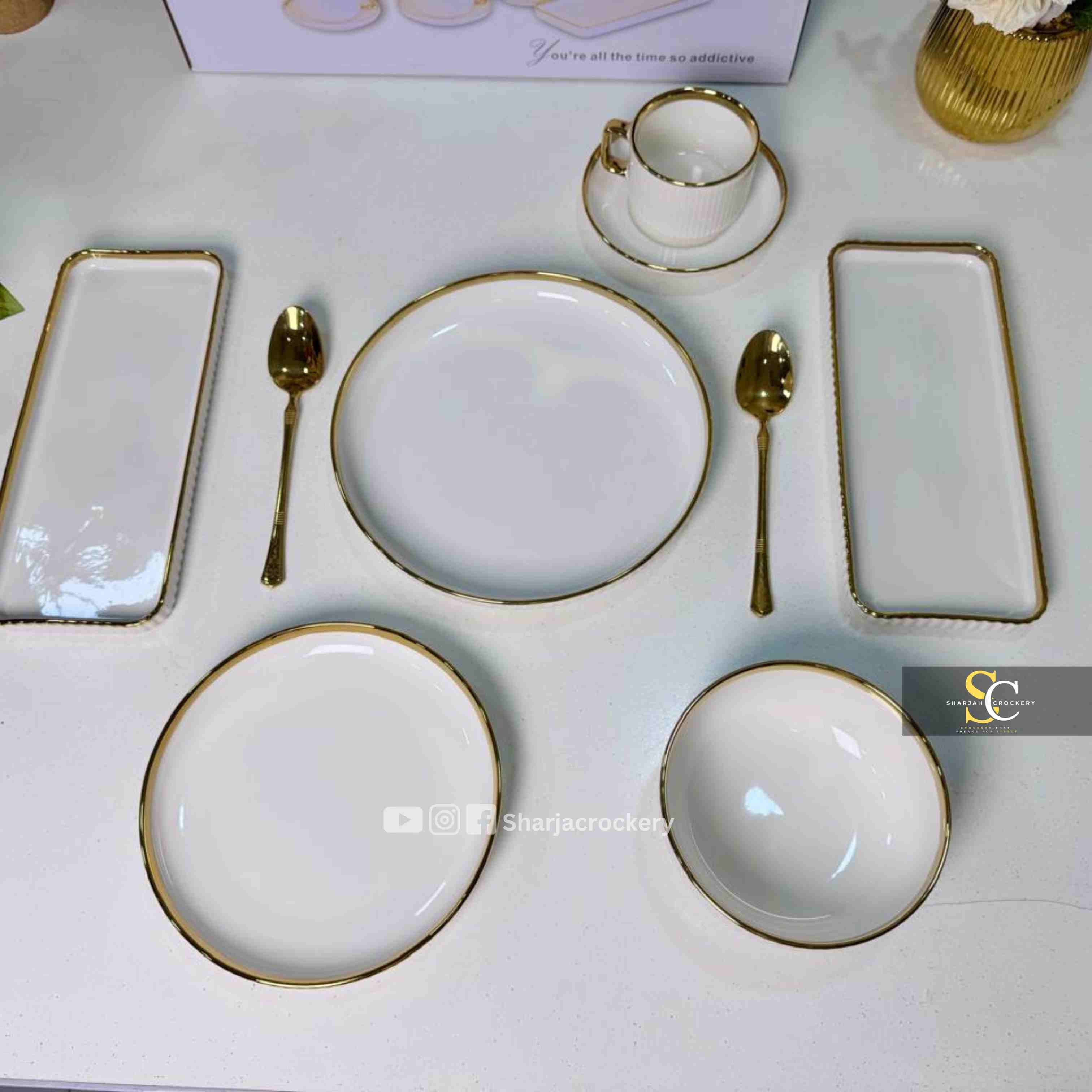 Elegant White Porcelain 32 Pcs Dinner Set – Gold Rim Tableware for 6 Persons