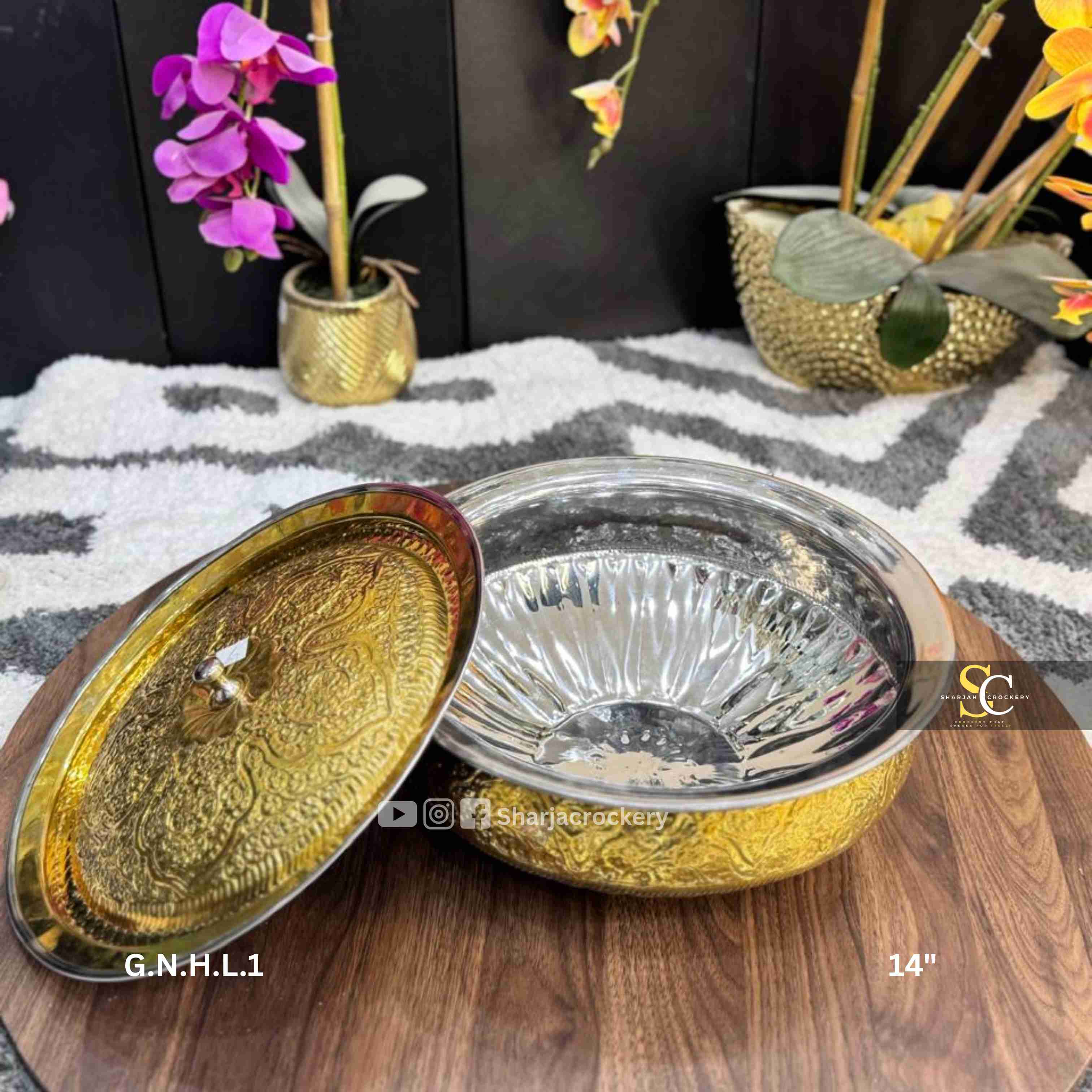 Intricate Hand-Embossing: Both the bowl and the matching lid are adorned with beautiful, detailed hand-embossed patterns, showcasing superior craftsmanship and adding a luxurious, royal touch.