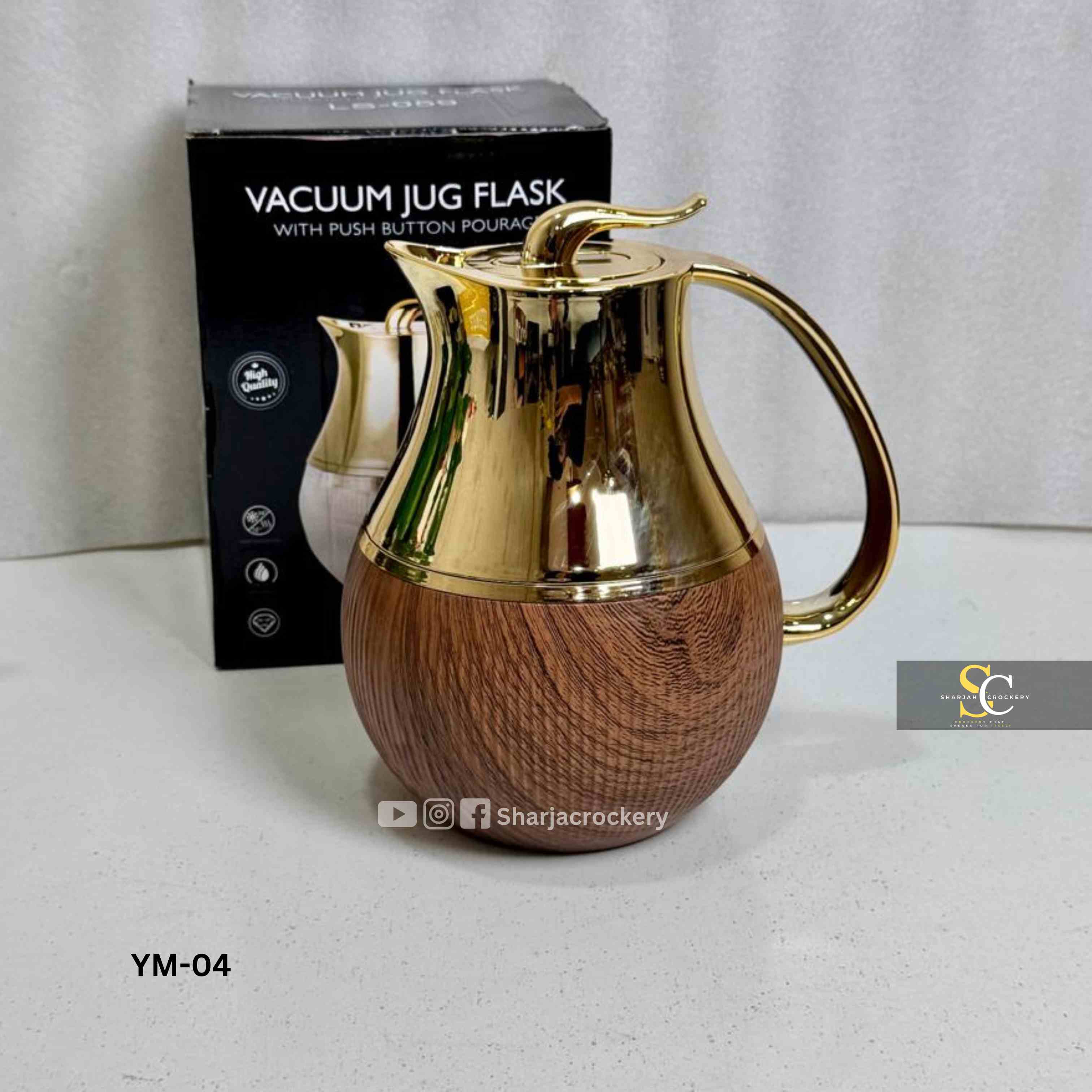 Add a touch of style to your serving with this 1.0L jug-shaped vacuum flask. Featuring a unique half golden and half wood design with a rounded golden handle, it keeps your beverages hot or cold for hours. Perfect for daily use, special gatherings, or as a premium gift option