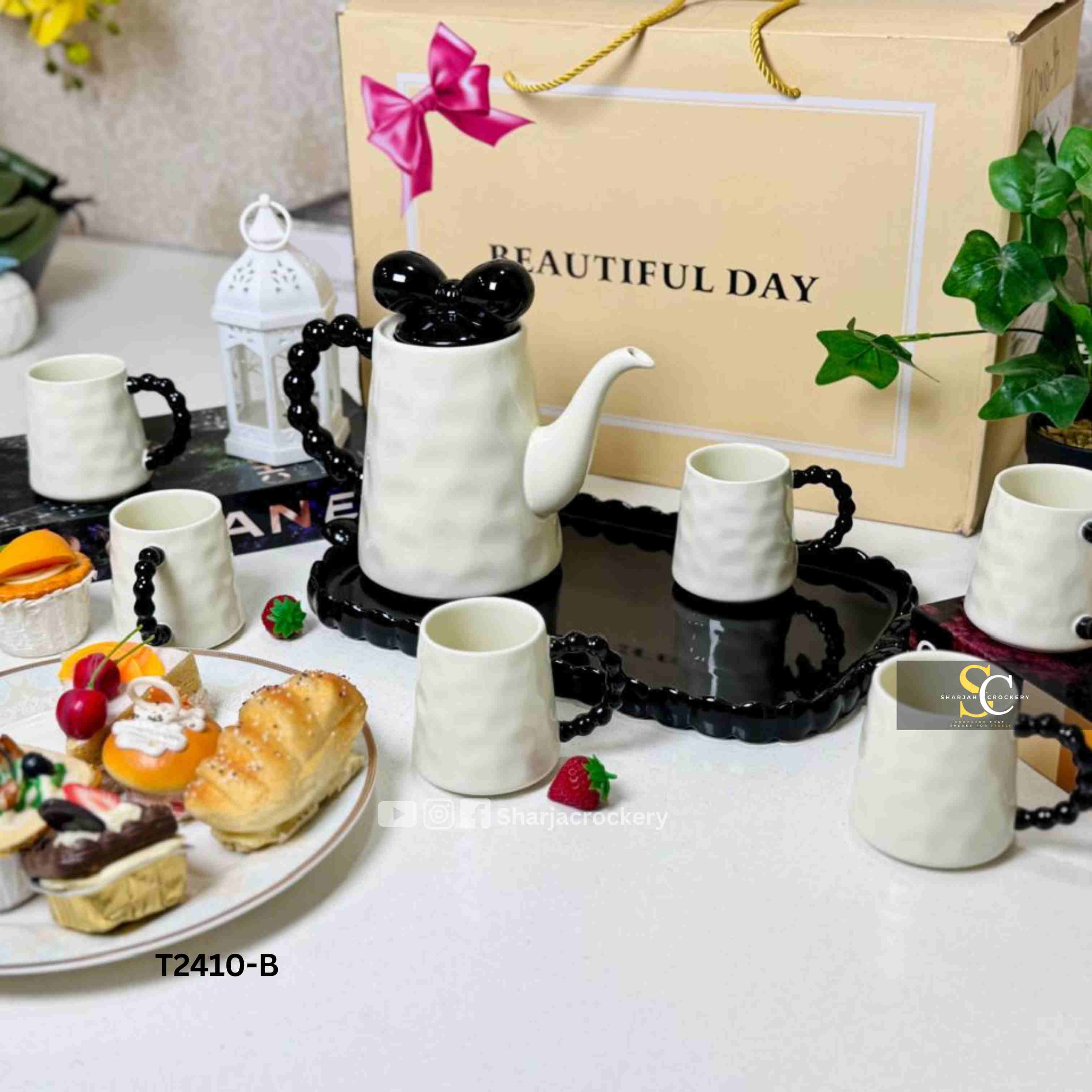 Charming 8-Piece Black & White Modern Tea & Coffee Set - "T2410-B"