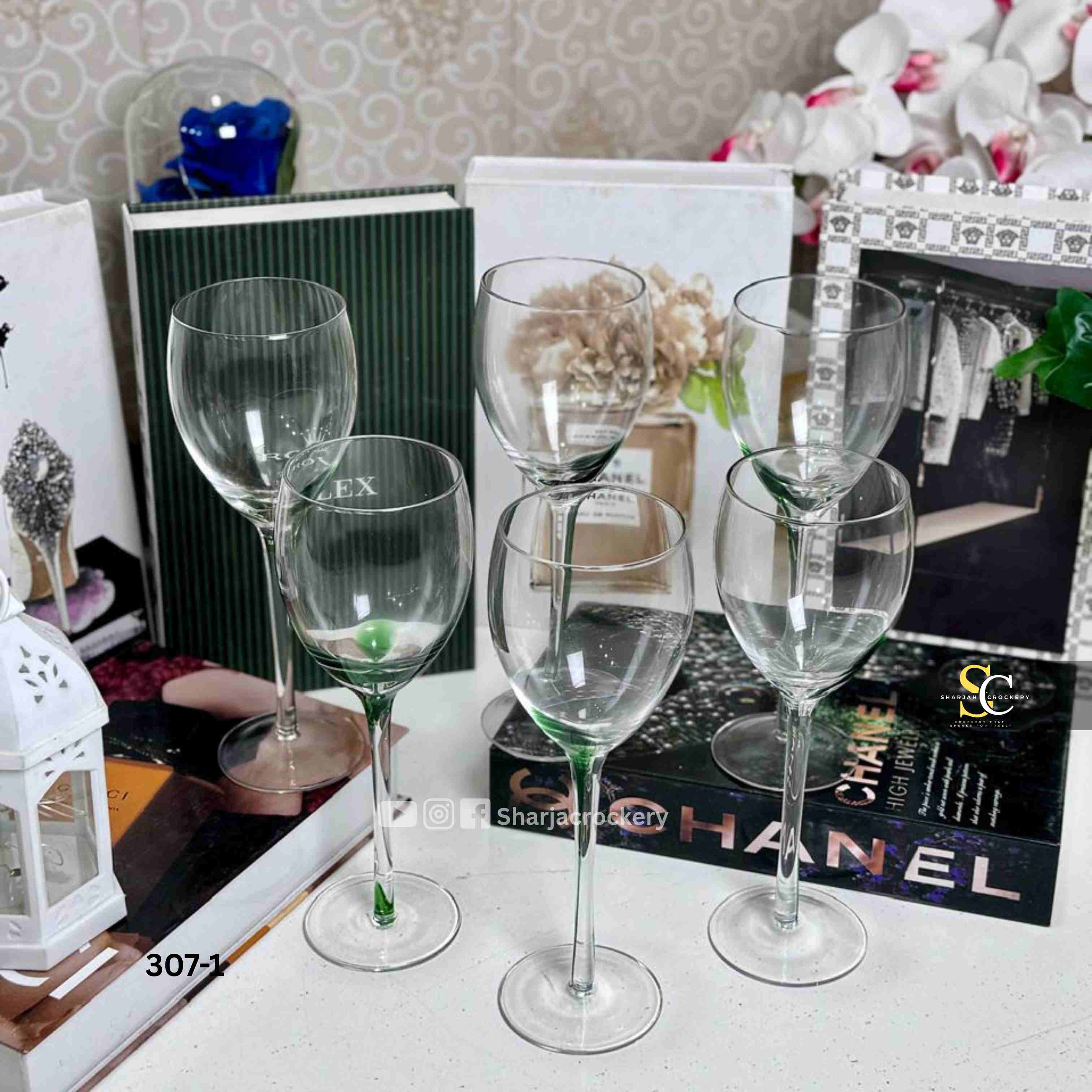 Add a subtle touch of color to your table with our Elegant Clear Stemware Set. This collection of six glasses features a classic, clear bowl and a refined green tint on the stem. They are perfect for serving water, juice, iced tea, or any refreshing cold beverage.