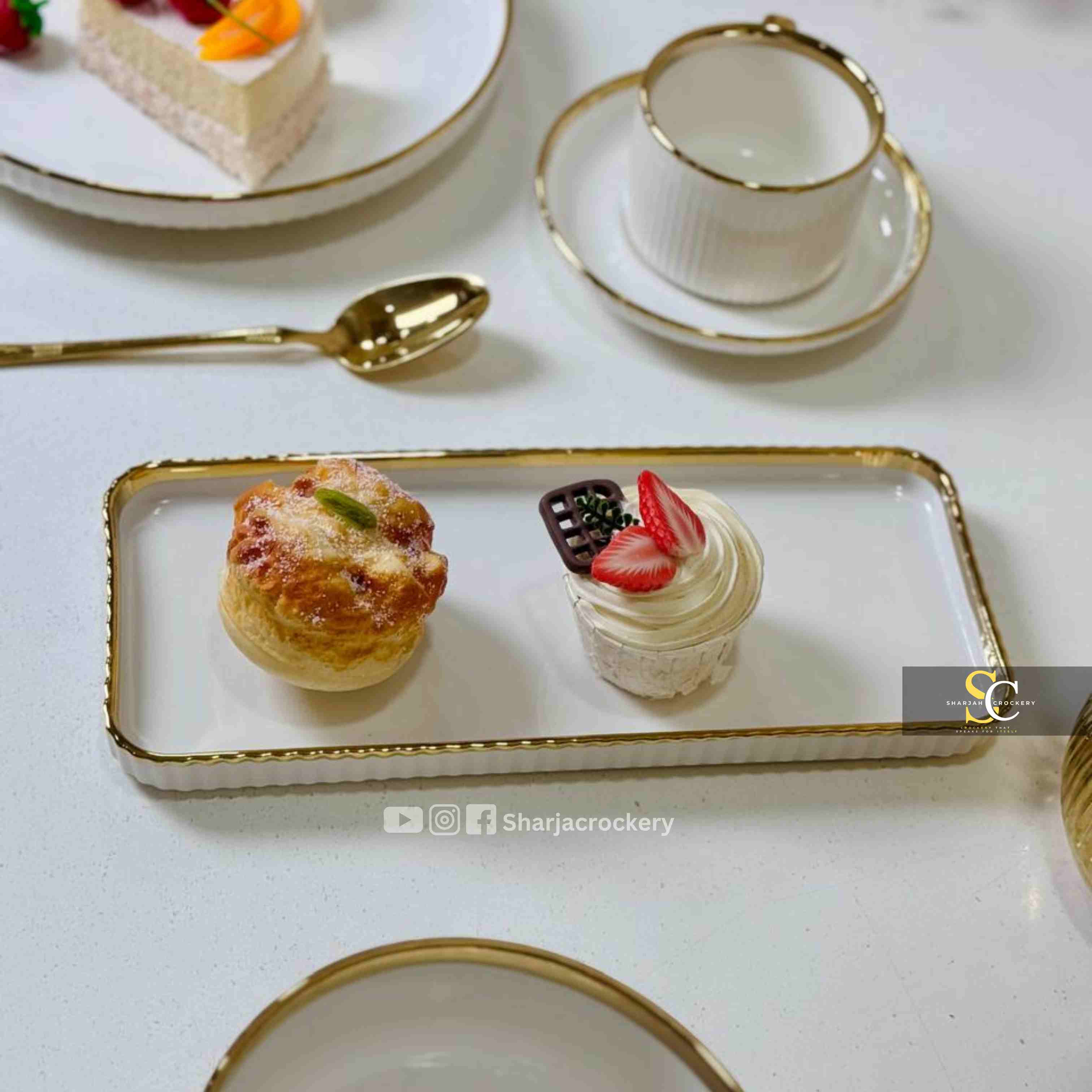 Serve with timeless elegance using our White Porcelain 32 Pcs Dinner Set – beautifully finished with a classic gold rim that adds a luxurious touch to your table. Whether you're hosting guests or enjoying daily meals, this set brings charm and sophistication to every dining occasion.