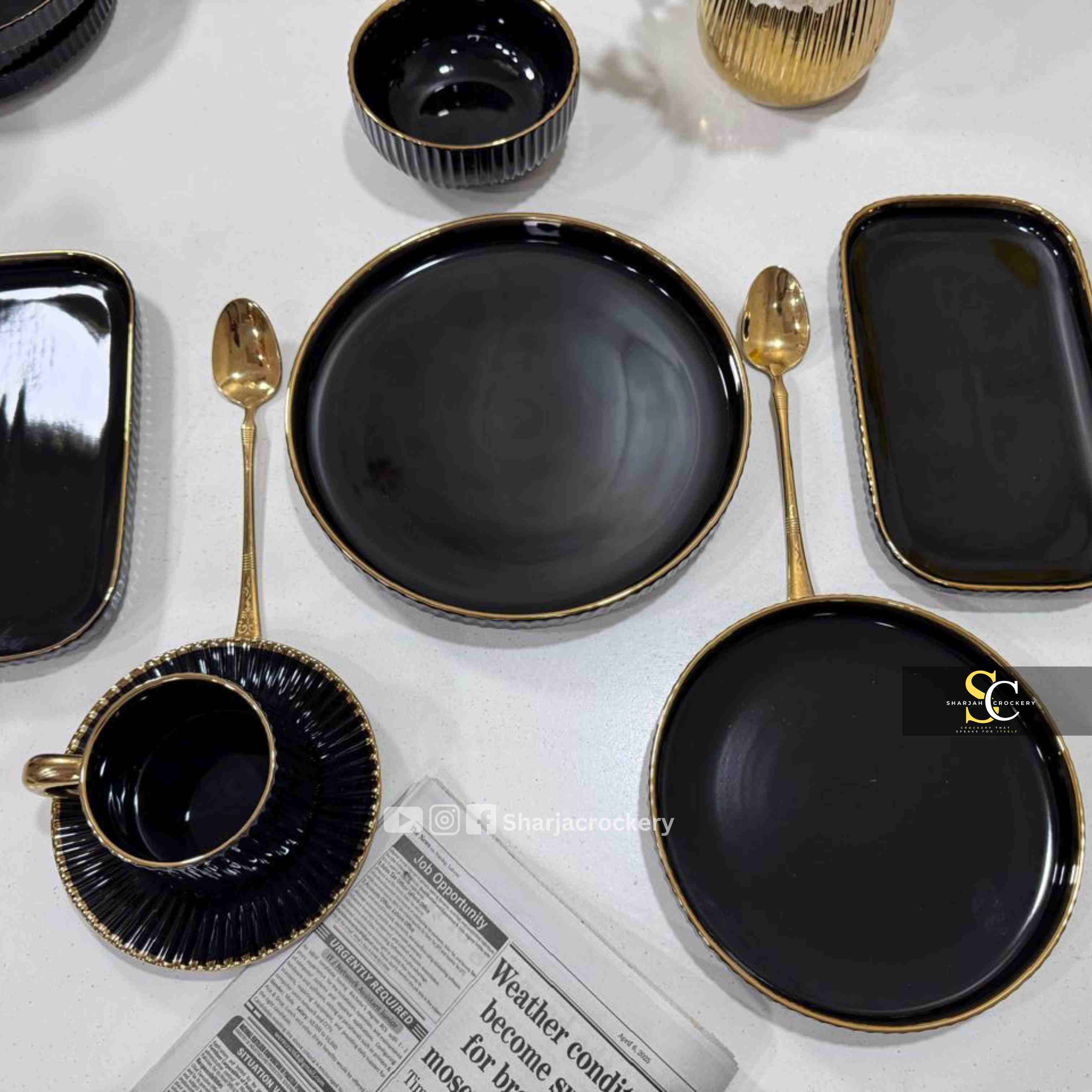 Luxury Black Porcelain 32 Pcs Dinner Set – Elegant Tableware with Gold Skip to content
