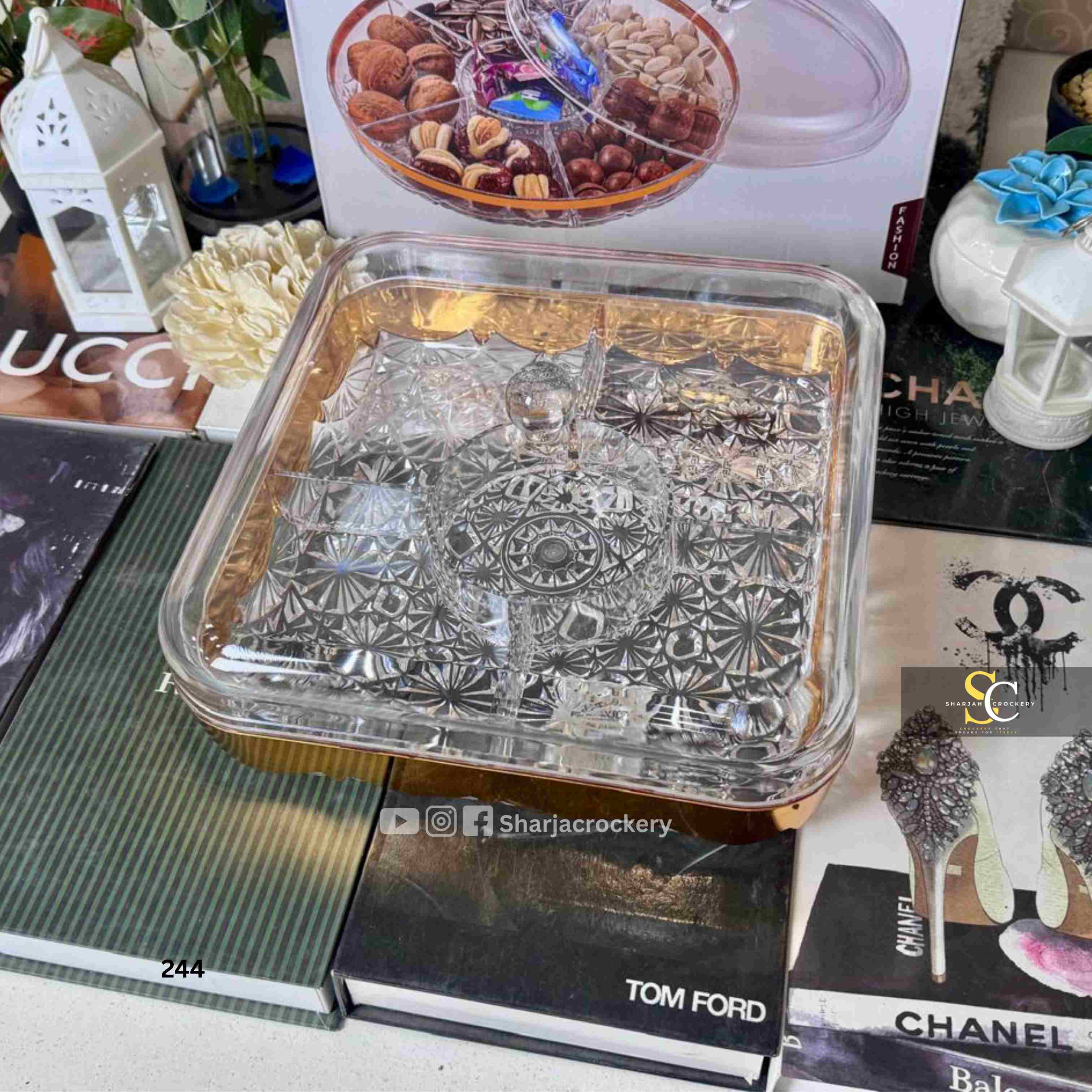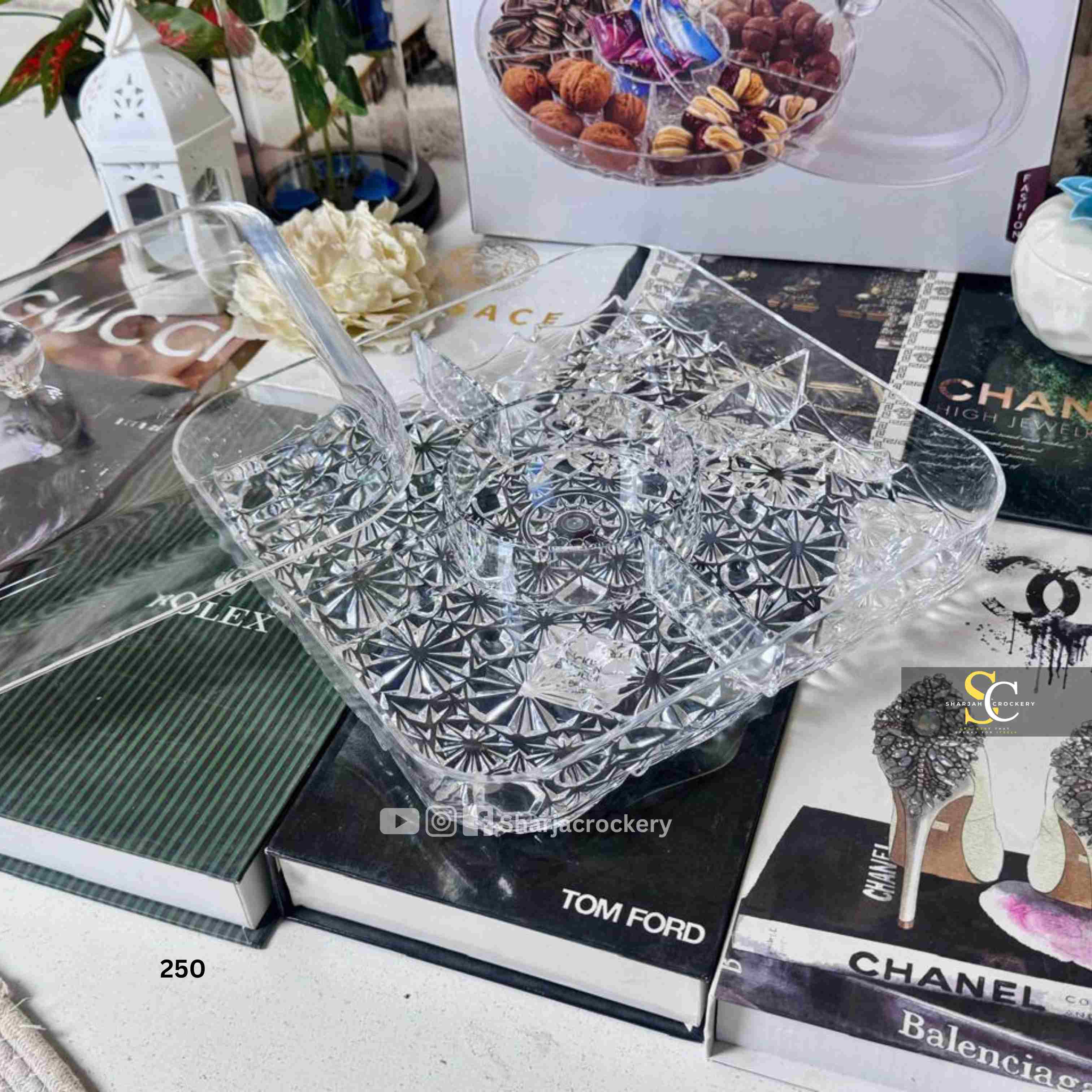 Elevate Your Hosting with Our Luxury Crystal-Cut Acrylic Dry Fruit Servers