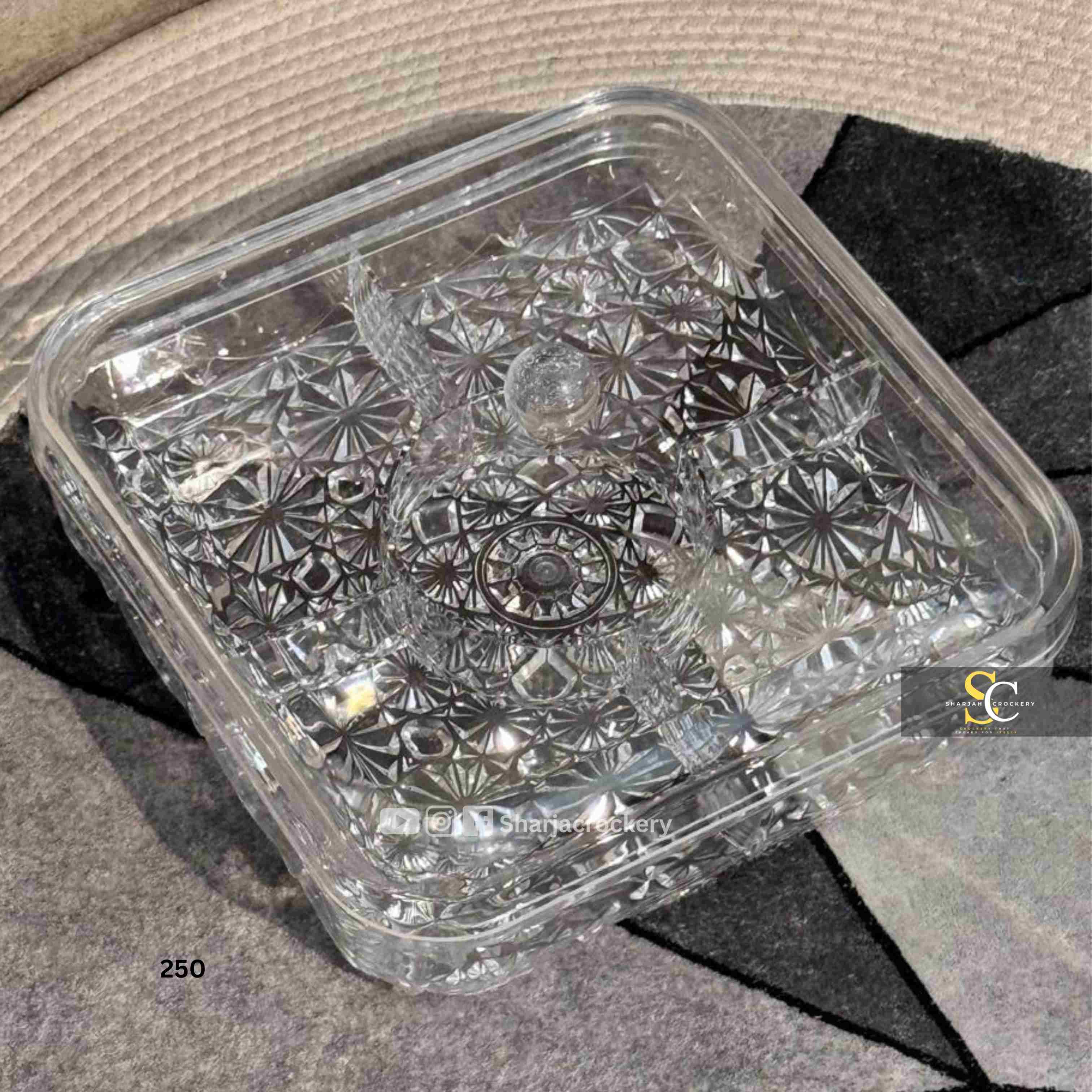 Present your dry fruits, nuts, candies, and snacks in exquisite style with our Premium Acrylic Dry Fruit Server Collection. Inspired by classic crystal design, these servers feature a dazzling, cut-glass pattern that adds a touch of luxury and sophistication to any setting, while being made from durable, high-quality acrylic.