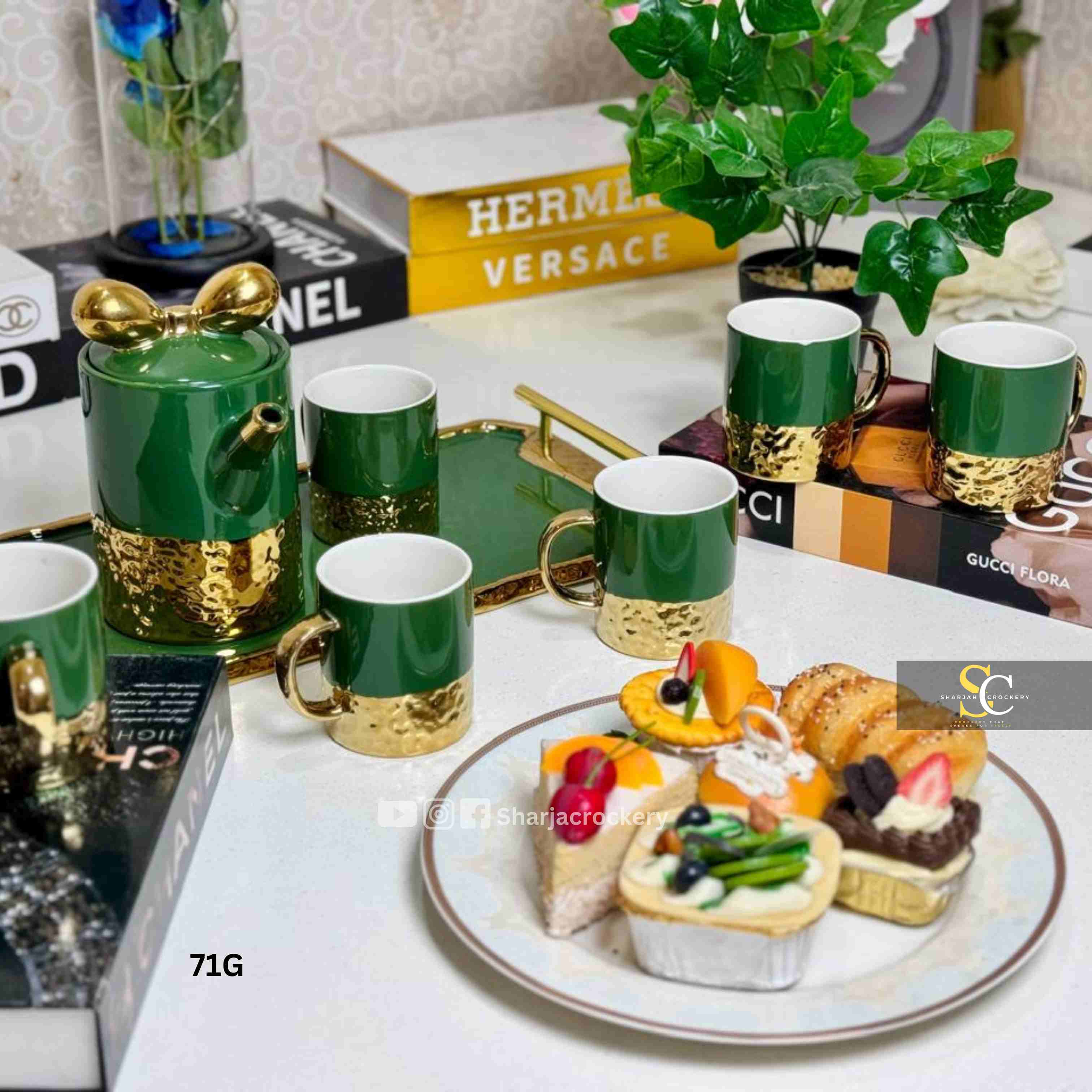 • 71G (Emerald Green): Deep emerald green paired with a striking, hammered metallic gold finish at the base.