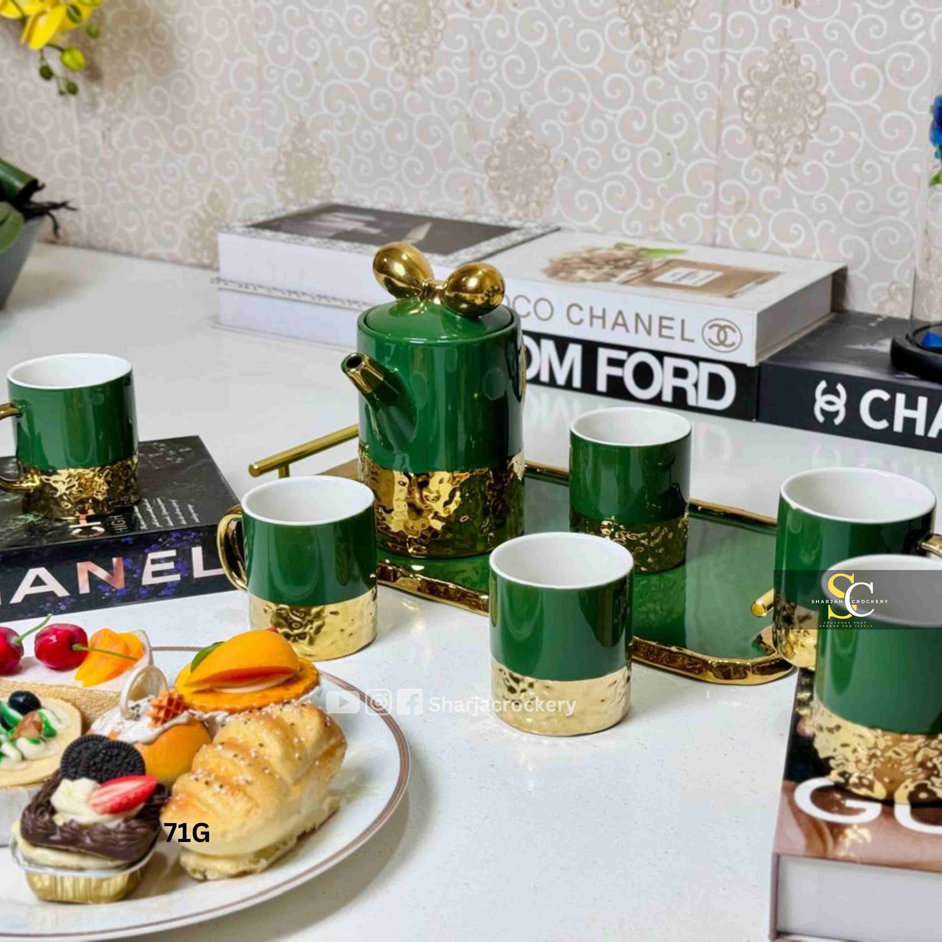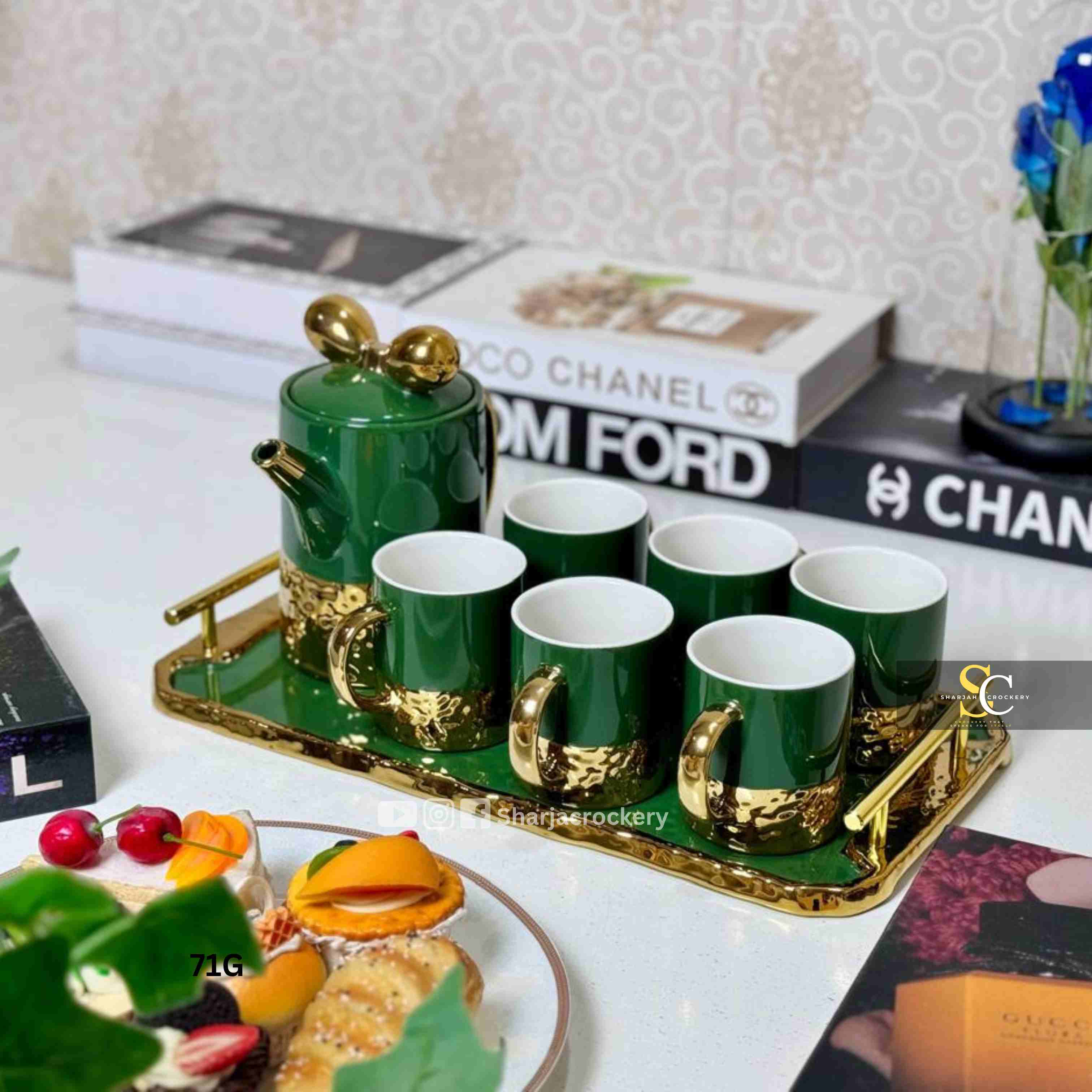 Introduce a touch of opulence to your beverage service with this captivating 8-piece modern coffee and tea set. Designed for those who appreciate contemporary style and luxury, this set is guaranteed to be a centerpiece at any gathering.