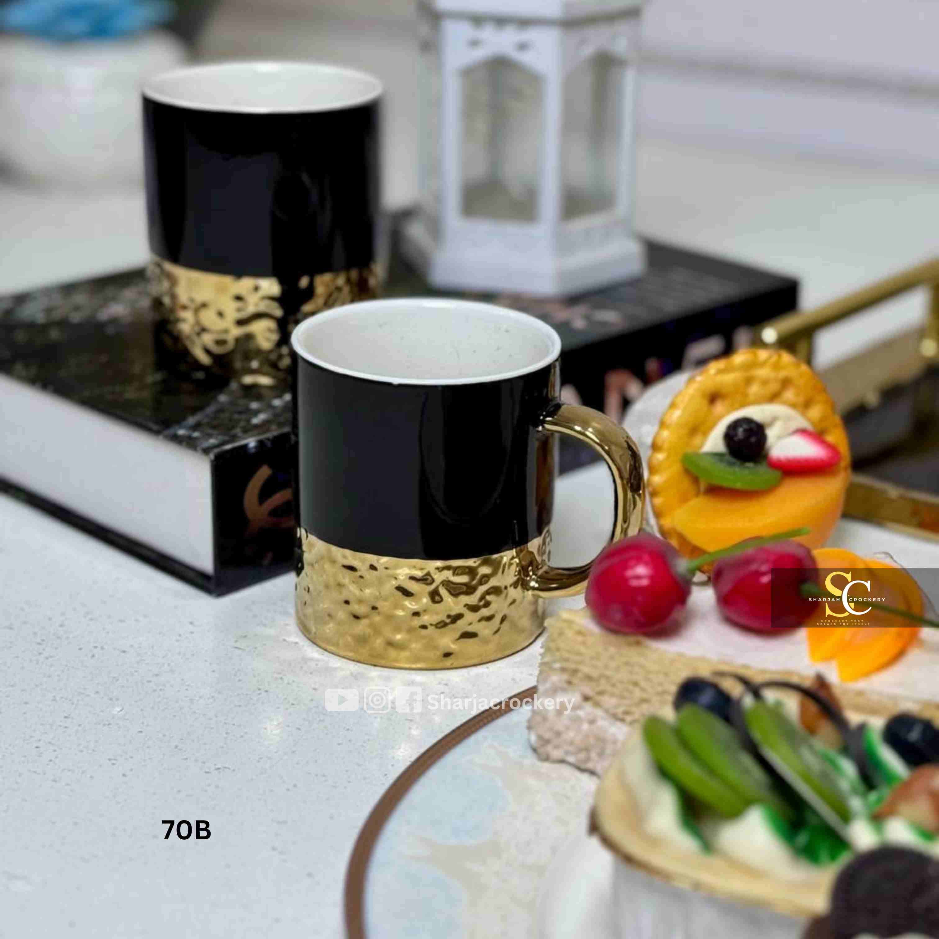 • 70B (Jet Black): Sleek black ceramic accented with the same bold metallic gold finish.