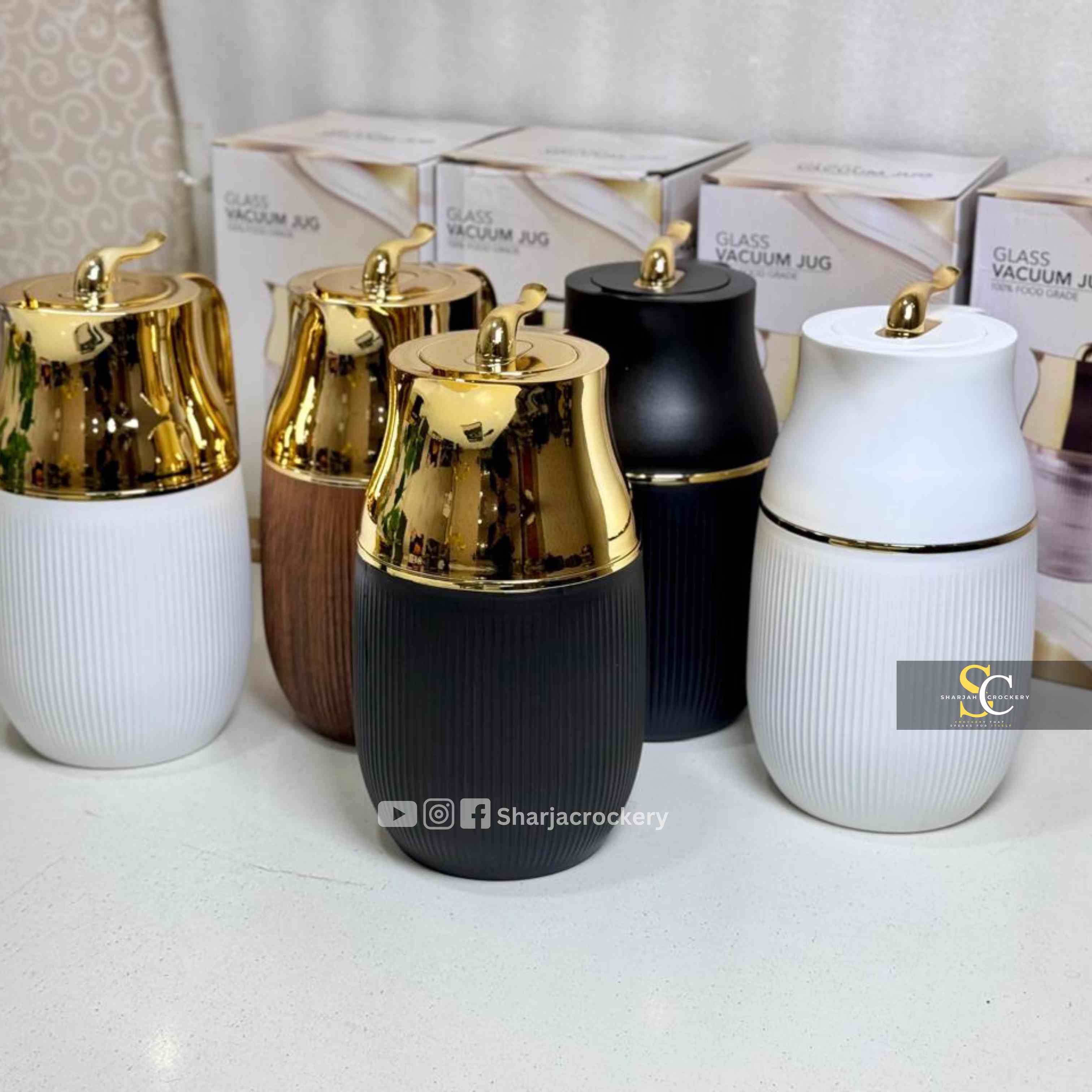 Premium Glass Vacuum Jug 1.0L Capacity 5 Elegant Designs with Golden Lid